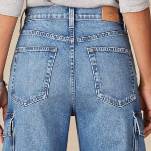 Straight cargo style that sets a relaxed tone for any occasion. Five pockets and two cargo pockets and slight fading. Cotton/elastane. Machine wash. USA. Sizes 24-32. Approx. 33l. 11.25 rise; 20.5 leg opening.