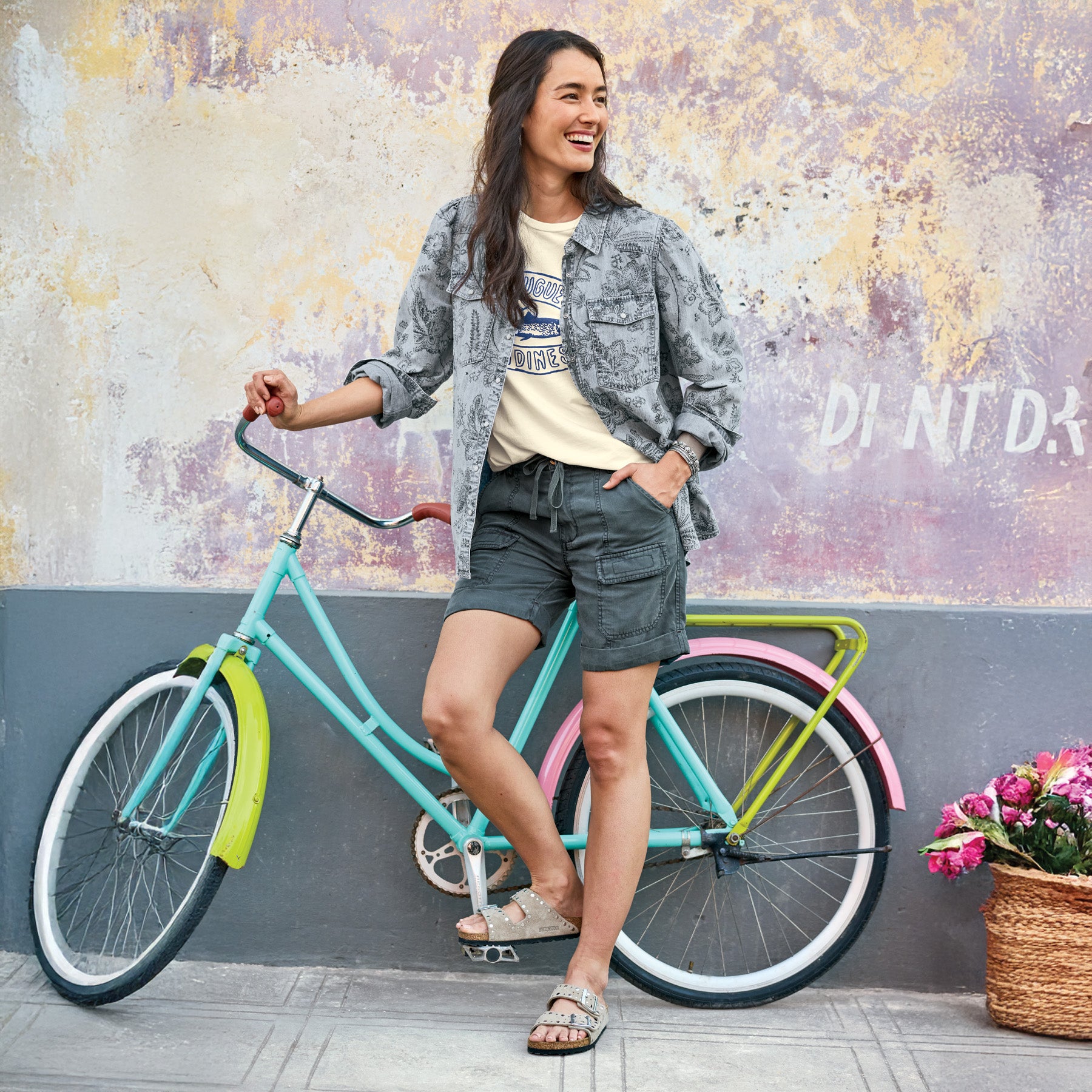 Vintage-inspired faded floral prints bring a touch of nature to this button-down top with pearl snap buttons at the placket. collar and front flap of the patch pockets. Shirttail hem. special back yoke detail. Sizes XXS (00). XS (0–2). S (4–6). M (8–10). L (12–14). XL (16–18). Approx. 24l.